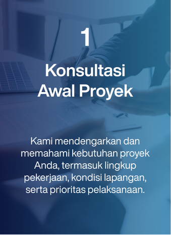 Kami memulai setiap kerja sama dengan pemahaman yang menyeluruh terhadap kebutuhan proyek Anda. Mulai dari tujuan pembangunan, tantangan teknis, hingga ekspektasi waktu dan anggaran.